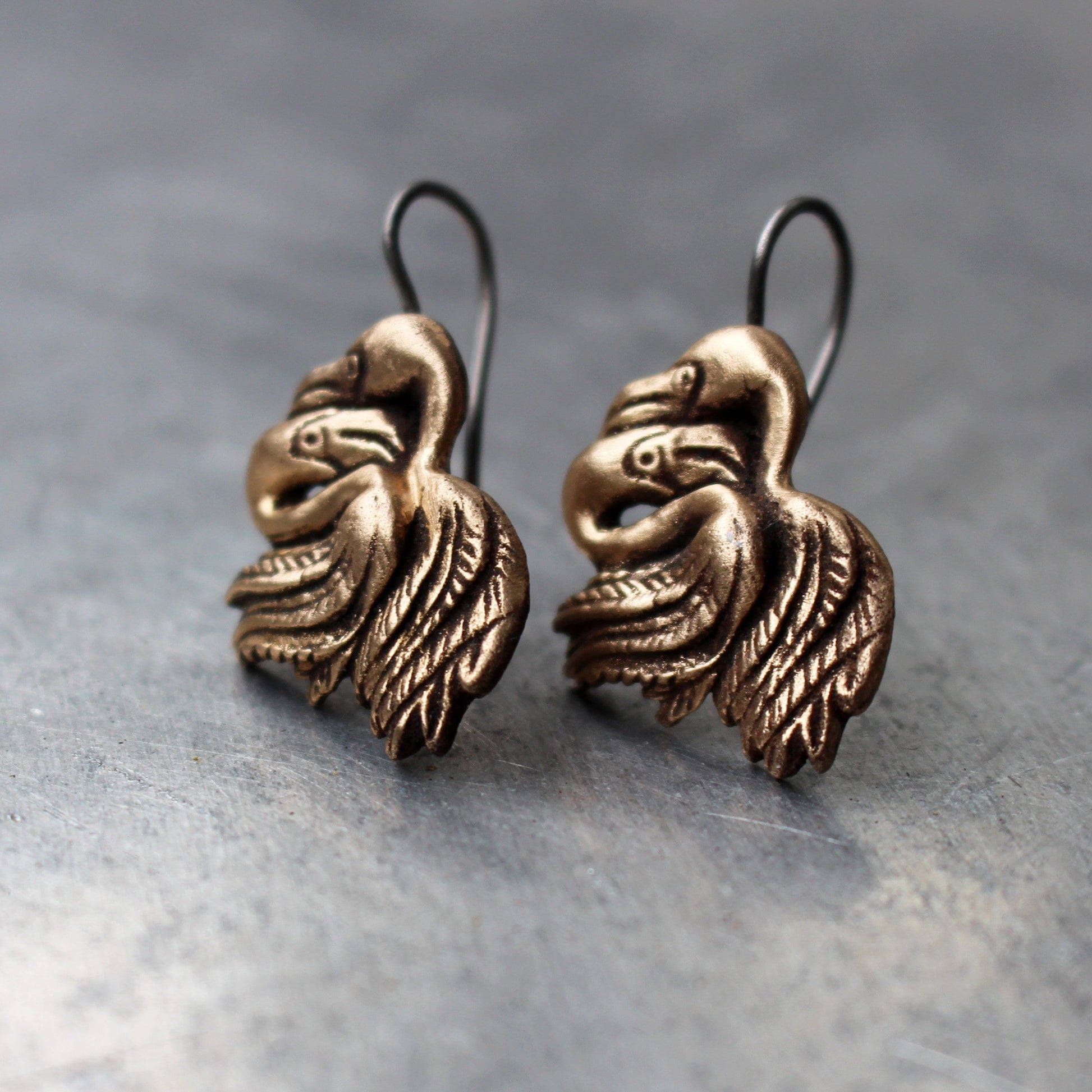 Handmade, lightweight flamingo earrings. I make them in sterling silver or bronze with hypoallergenic titanium ear wires.