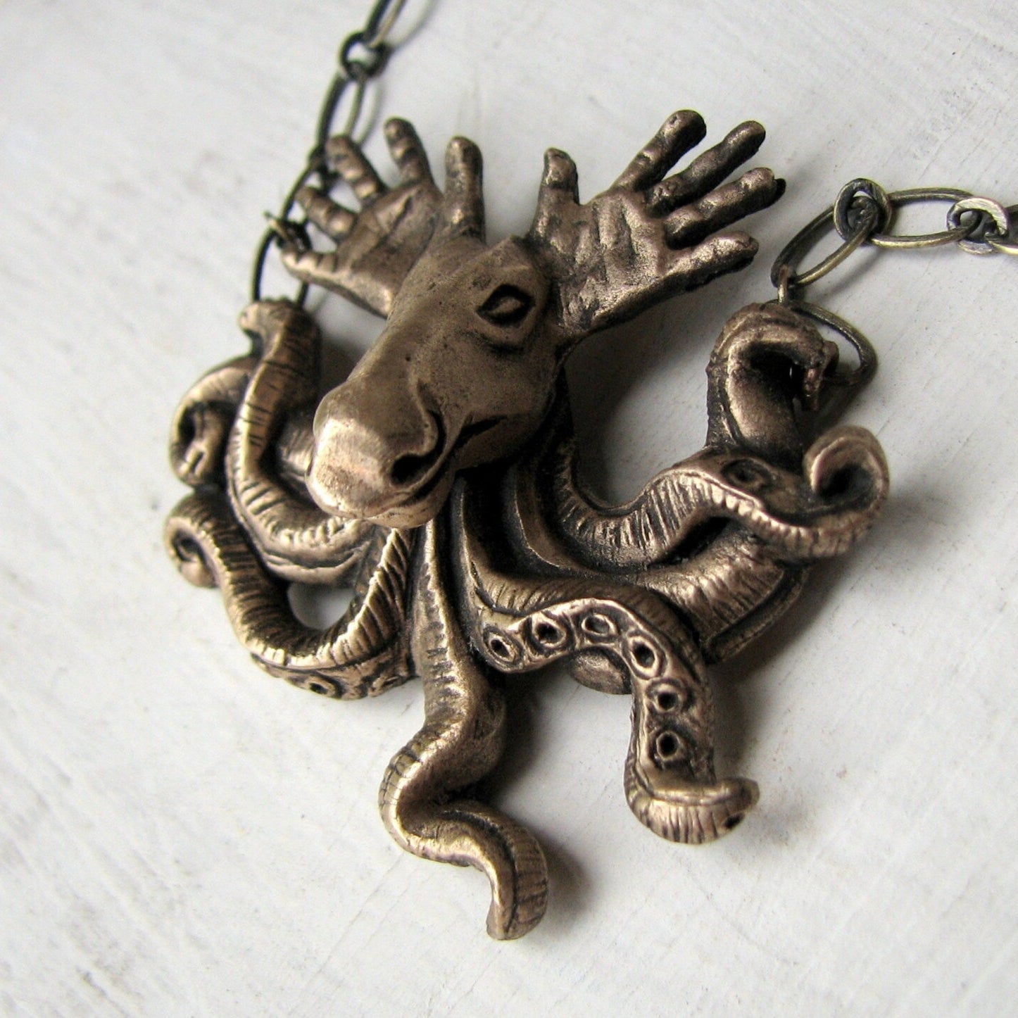 Tentacles, antlers, hands, this moose necklace has a lot of things going on. If you are looking for fun and unique jewelry, you have found it. You won't find many of these roaming the streets. At least not yet, me and my creatures are plotting on world domination, but it might take a while...
