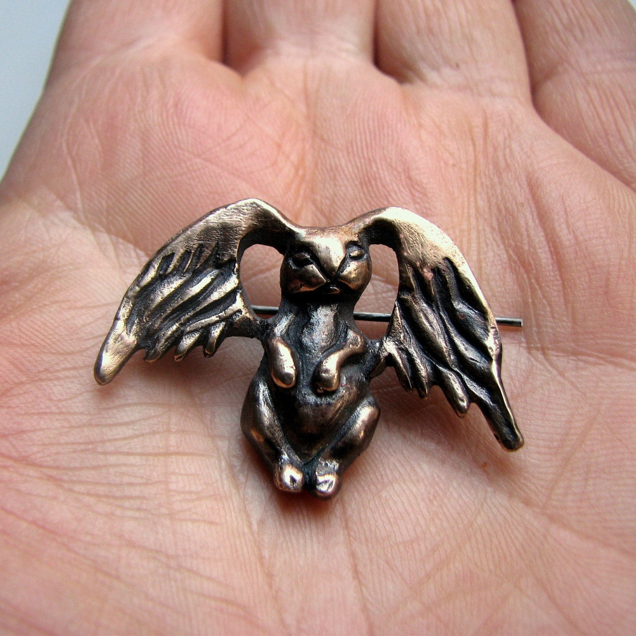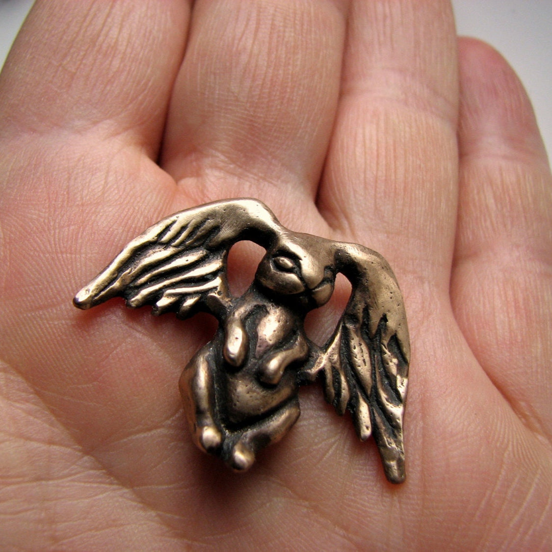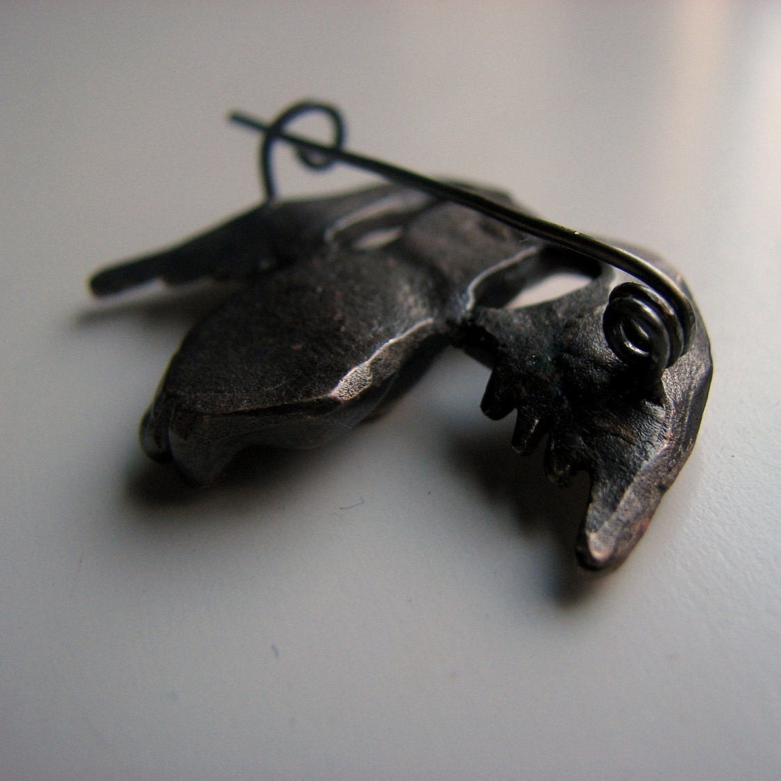 Skulpterad i brons och skyddad med hållbart smyckeslack. Jag gör detta som halsband eller brosch. Som halsband kommer det med en justerbar mässingskedja, kort (upp till 50 cm) eller lång (upp till 80 cm). Till broschen gör jag en nål i rostfritt stål som gjuts in i bronset.