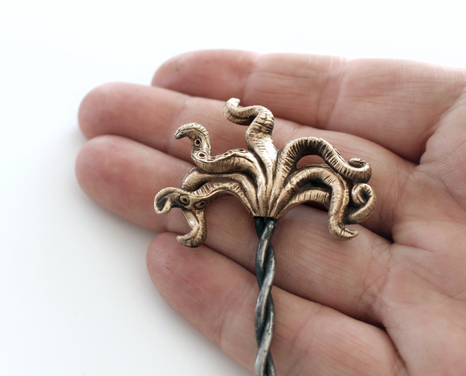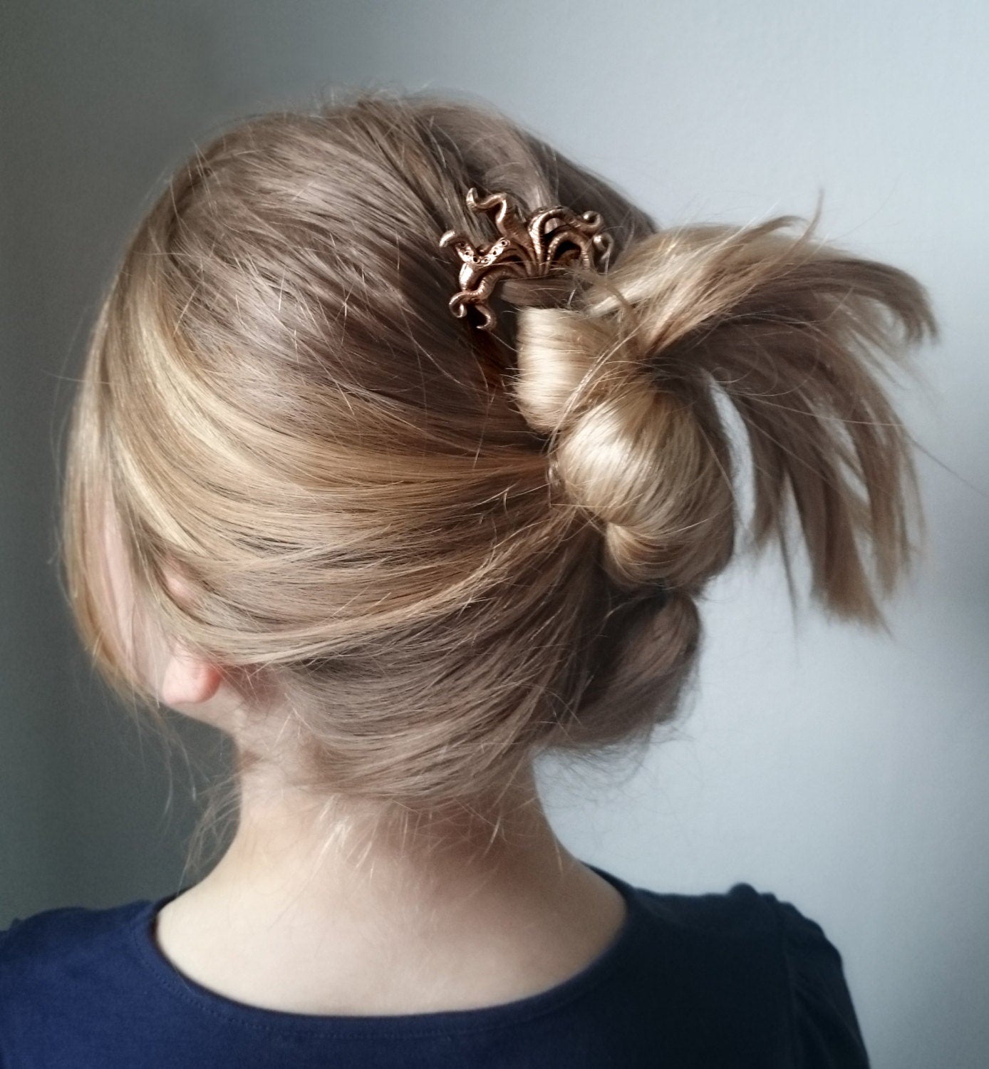 En stilren och lekfull hårpinne med bläckfisk tentakler, perfekt för att skapa en slarvig knut eller en elegant uppsättning.