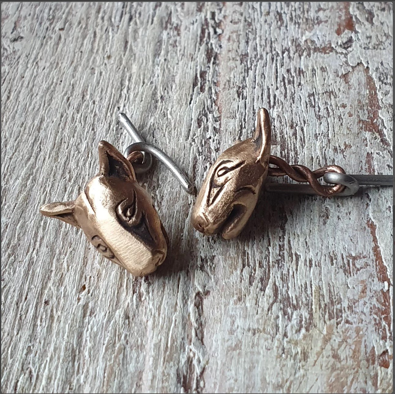 Jag skapar dessa manschettknappar i två varianter: silver med titankrokar och brons med rostfria stålkrokar.