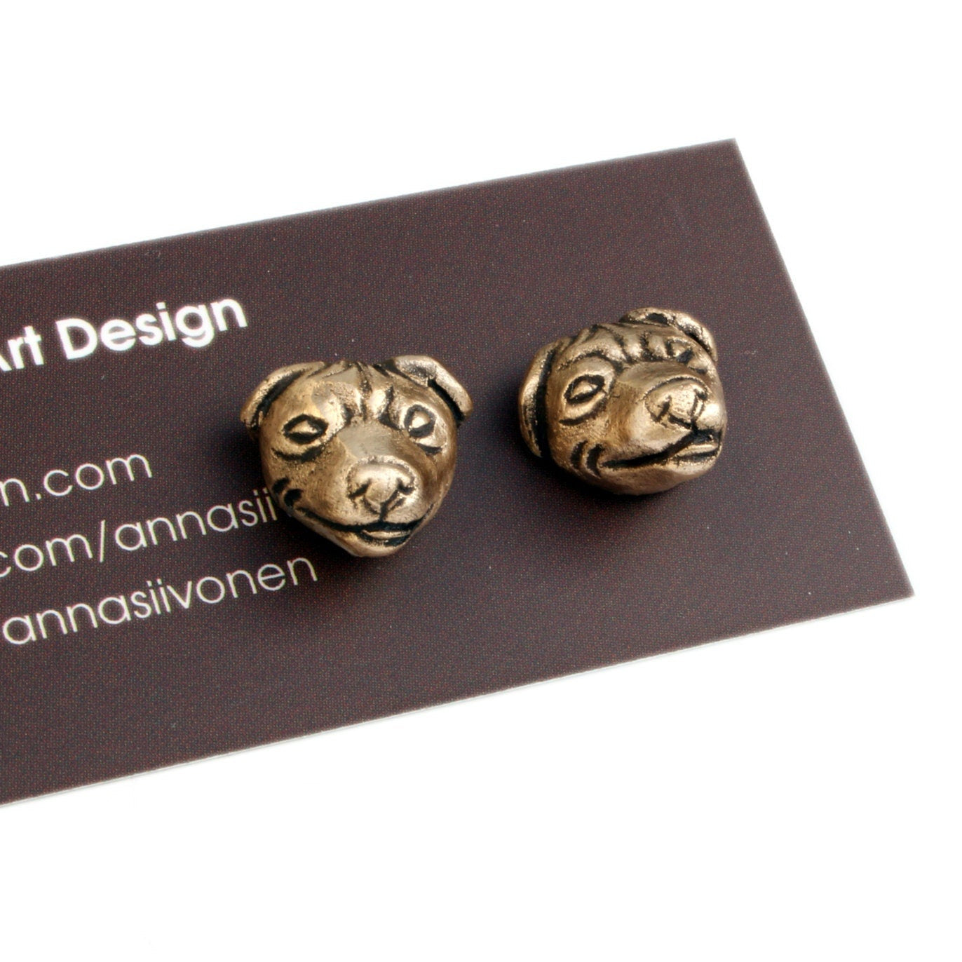 Vill du visa din kärlek till din hund på ett unikt sätt? Dessa handgjorda bronsörhängen pryds av en liten skulptur av just din hund – skapad speciellt för dig. Ingen massproduktion, bara äkta hantverk. Krokar av titan är ingjutna i bronset för komfort och hållbarhet. Välj mellan posts som är mindre och därför inte lika detaljrika eller hängande som kan vara större