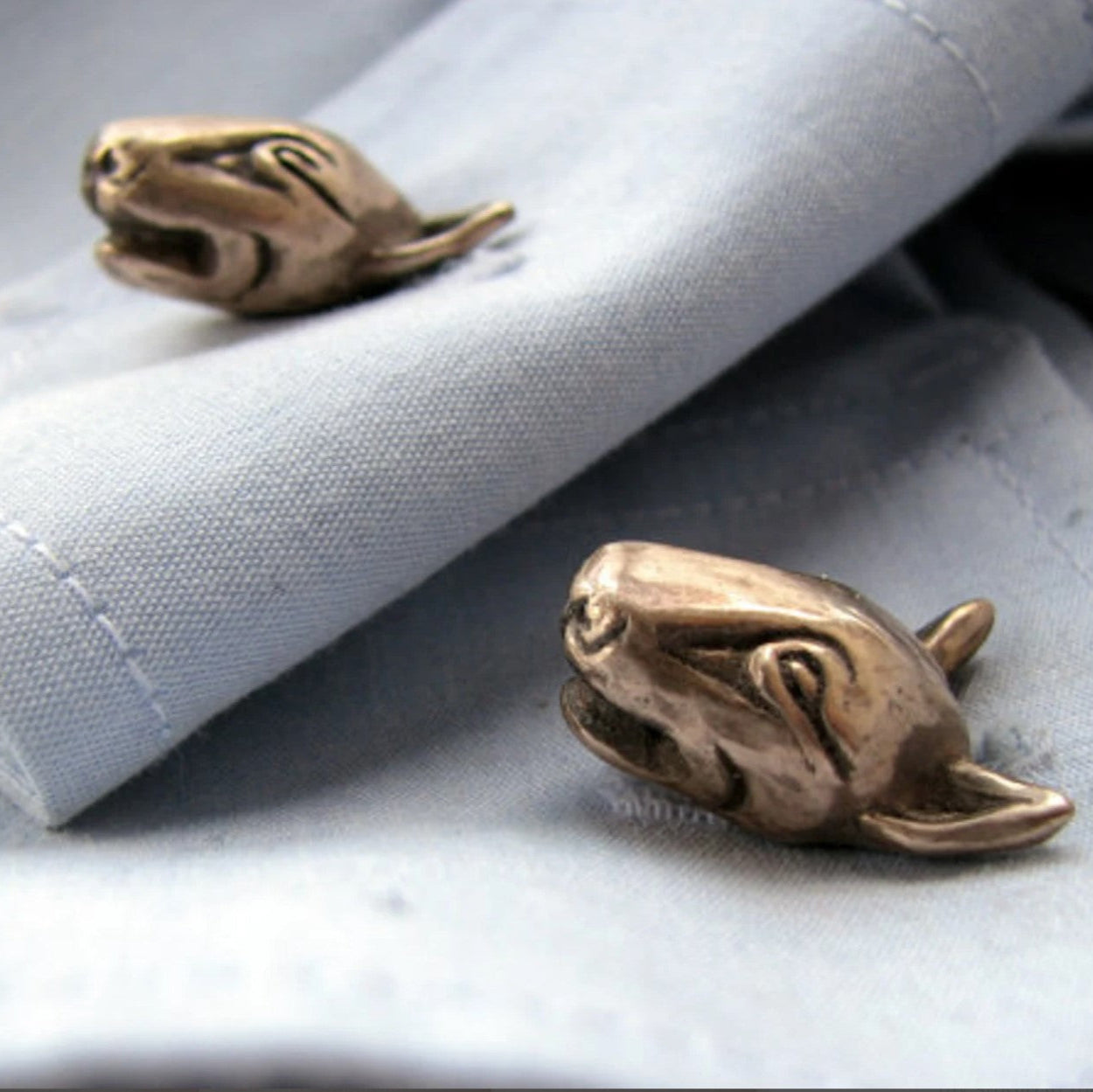 Ge din skjorta en diskret, men ändå personlig touch med dessa handgjorda manschettknappar i brons. Knapparna pryds av din hund i miniatyr. Krokarna är i rostfritt stål.