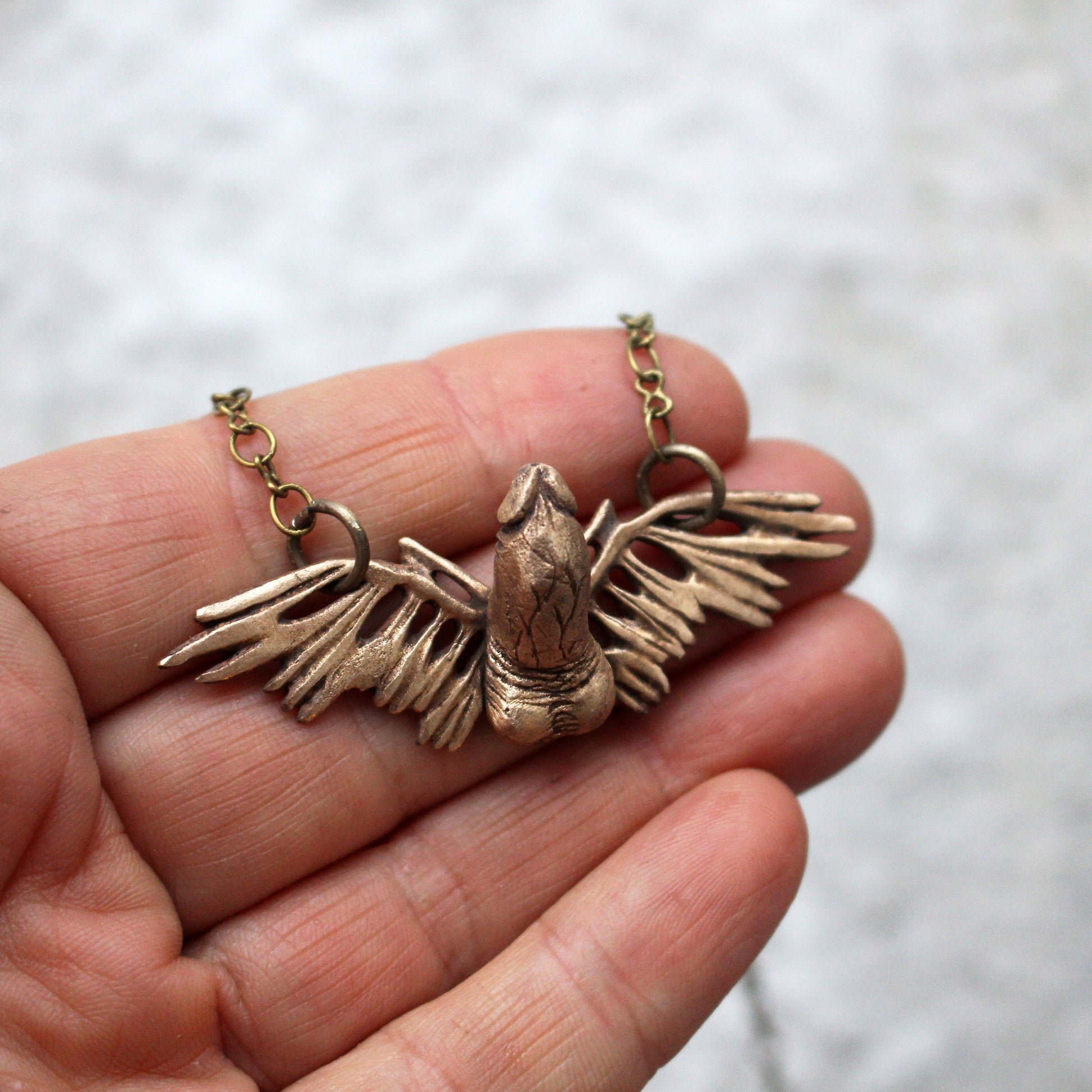 Denna är inspirerad av antika romerska fascinus amuletter. Fascinus var en romersk gud, i form av en bevingad penis. Halsband som föreställde faschinus bars för att ge tur och skydda mot onda andar. Det sägs att ordet fascinera kommer från detta.