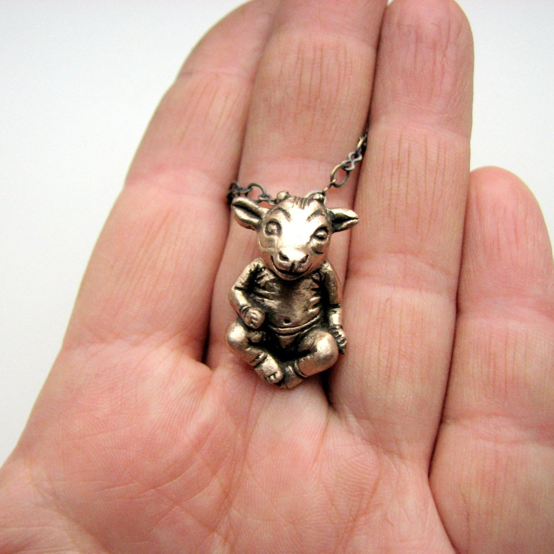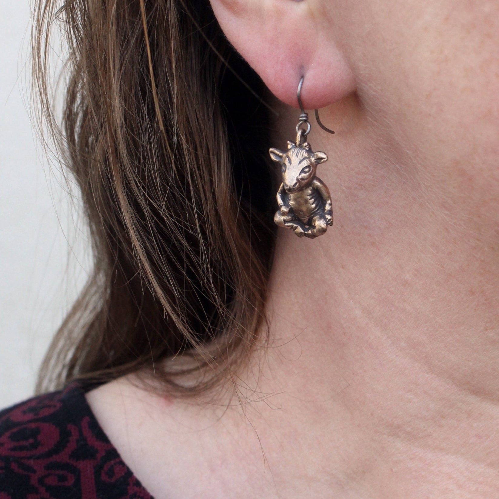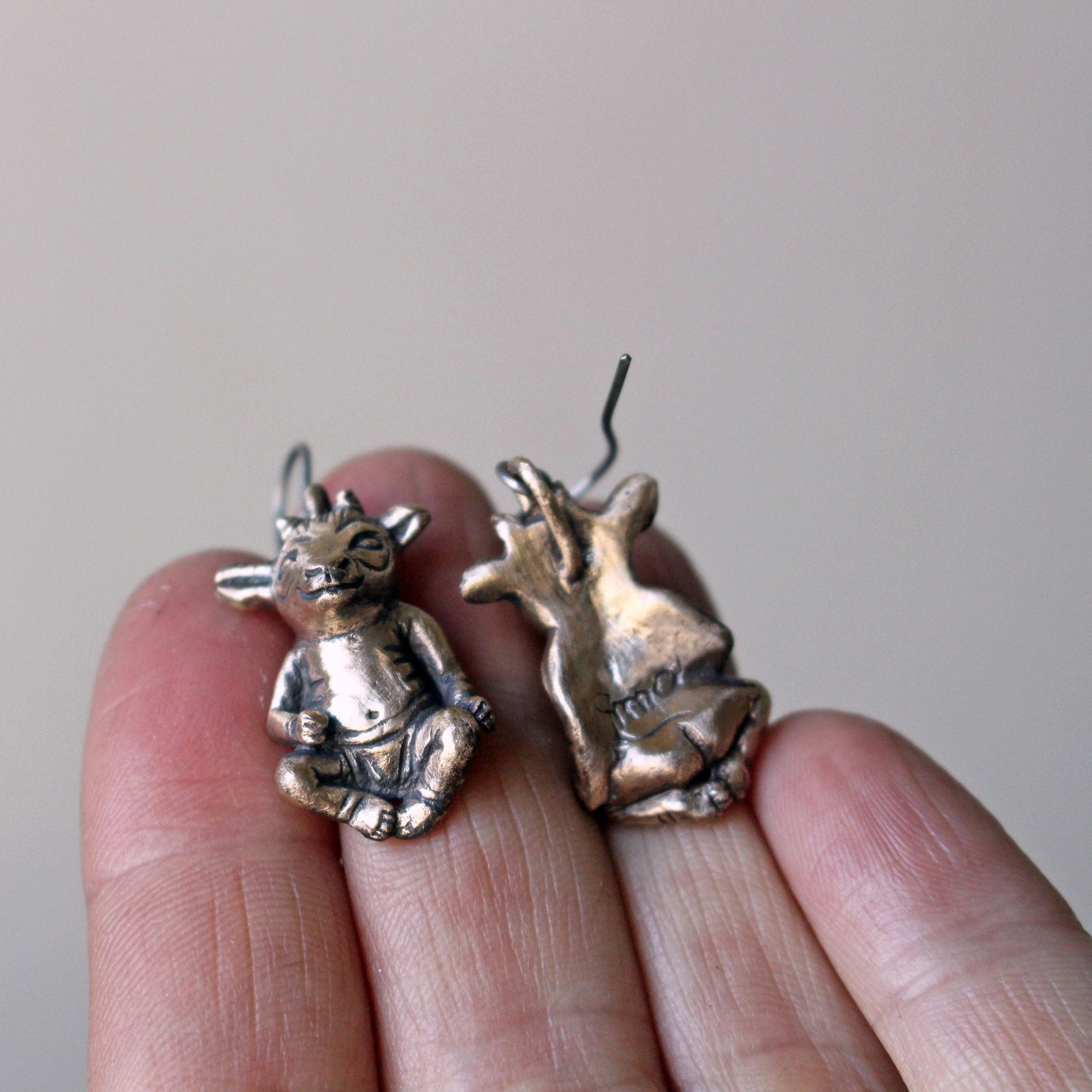Som halsband kommer det med en justerbar kedja. Silver figuren kommer med en justerbar silverpläterad kedja, medan brons demonen kommer med en justerbar mässingskedja. Välj mellan max 50 cm eller max 80 cm. Örhängeskrokarna är tillverkade i titan.