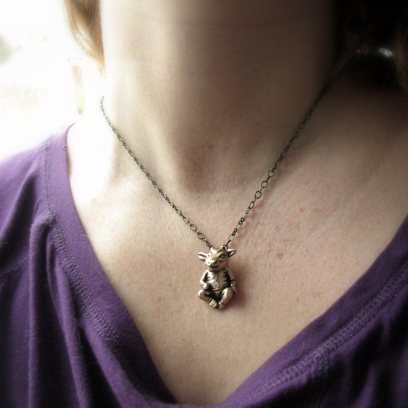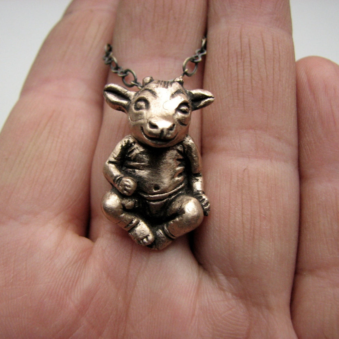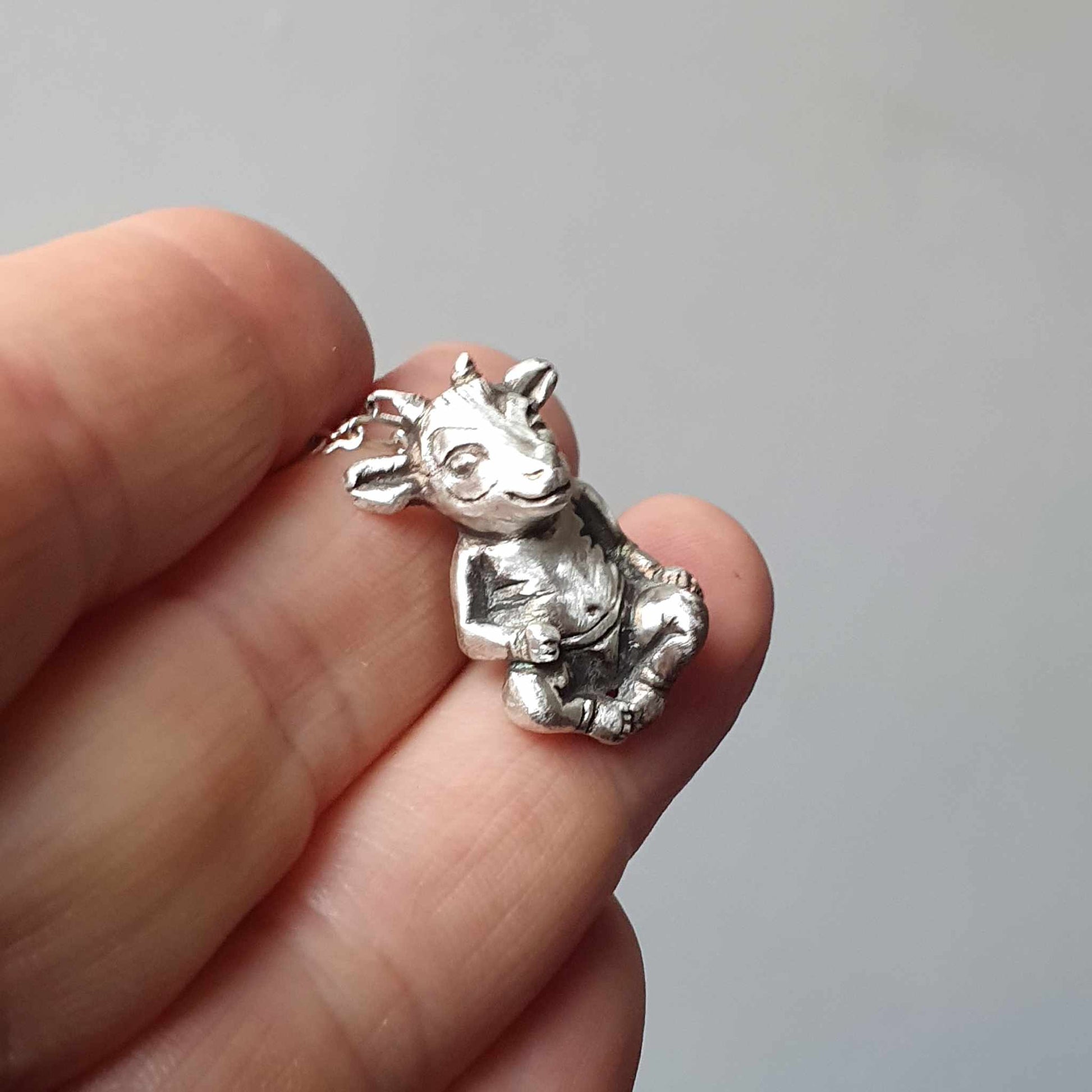 Som halsband kommer det med en justerbar kedja. Silver figuren kommer med en justerbar silverpläterad kedja, medan brons demonen kommer med en justerbar mässingskedja. Välj mellan max 50 cm eller max 80 cm. Örhängeskrokarna är tillverkade i titan.