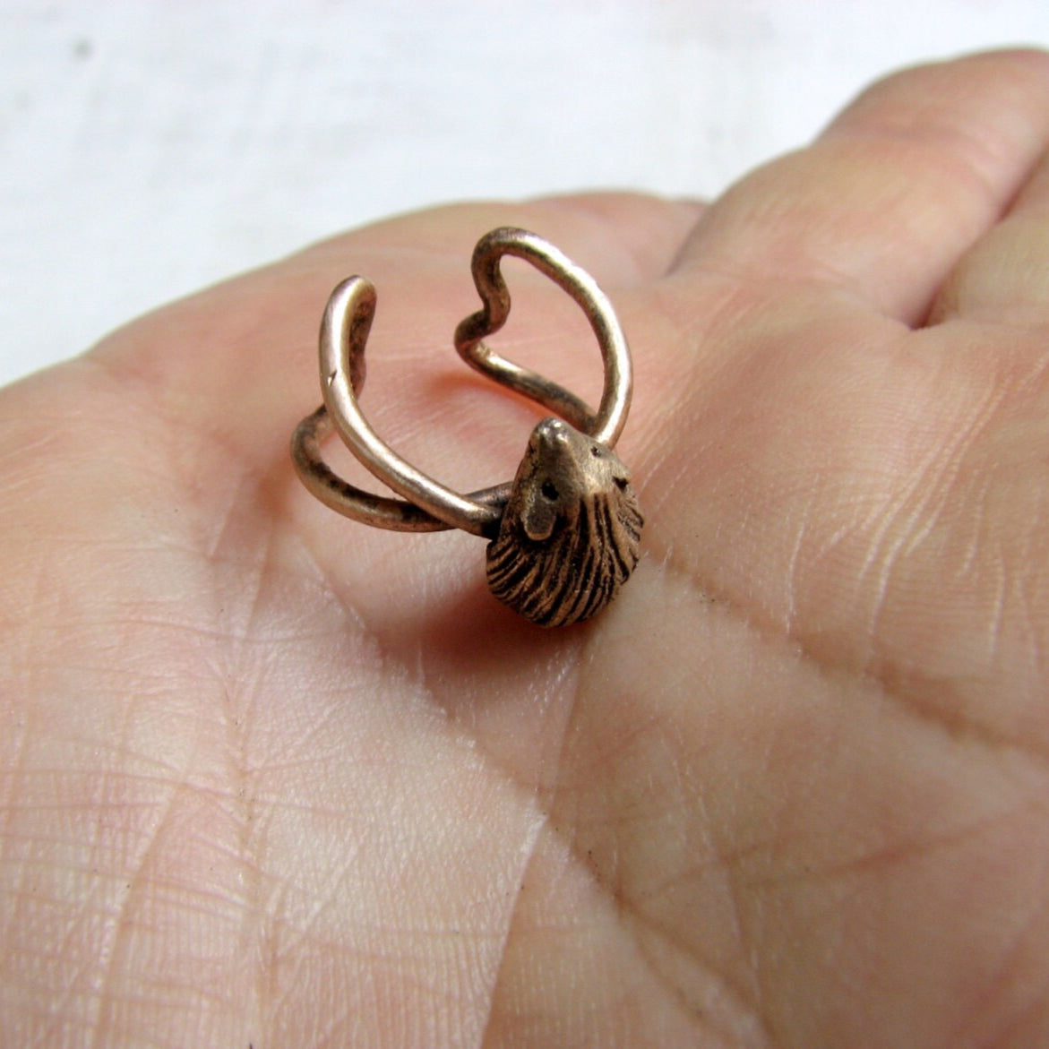 En liten igelkott som sitter på ditt öra. Passar på båda öronen. Handgjord i brons. Brons är hårdare och mer hållbart än silver och guld. Du anpassar den enkelt genom att trycka den till rätt passform.