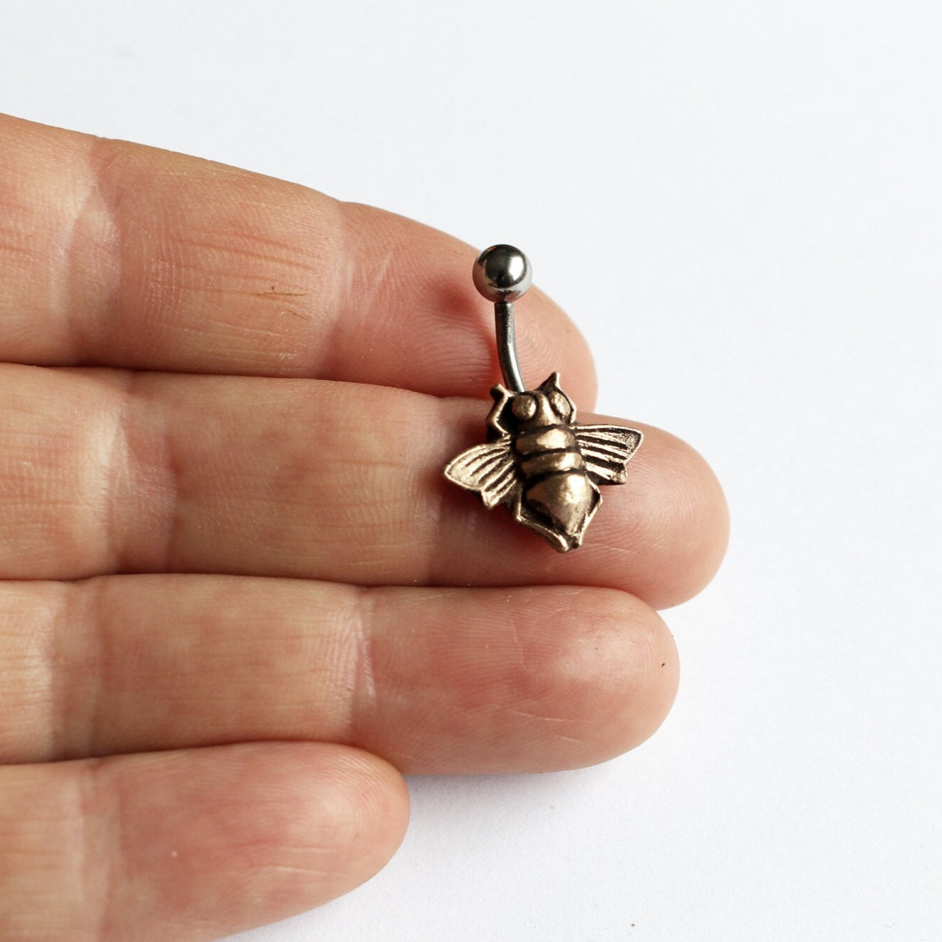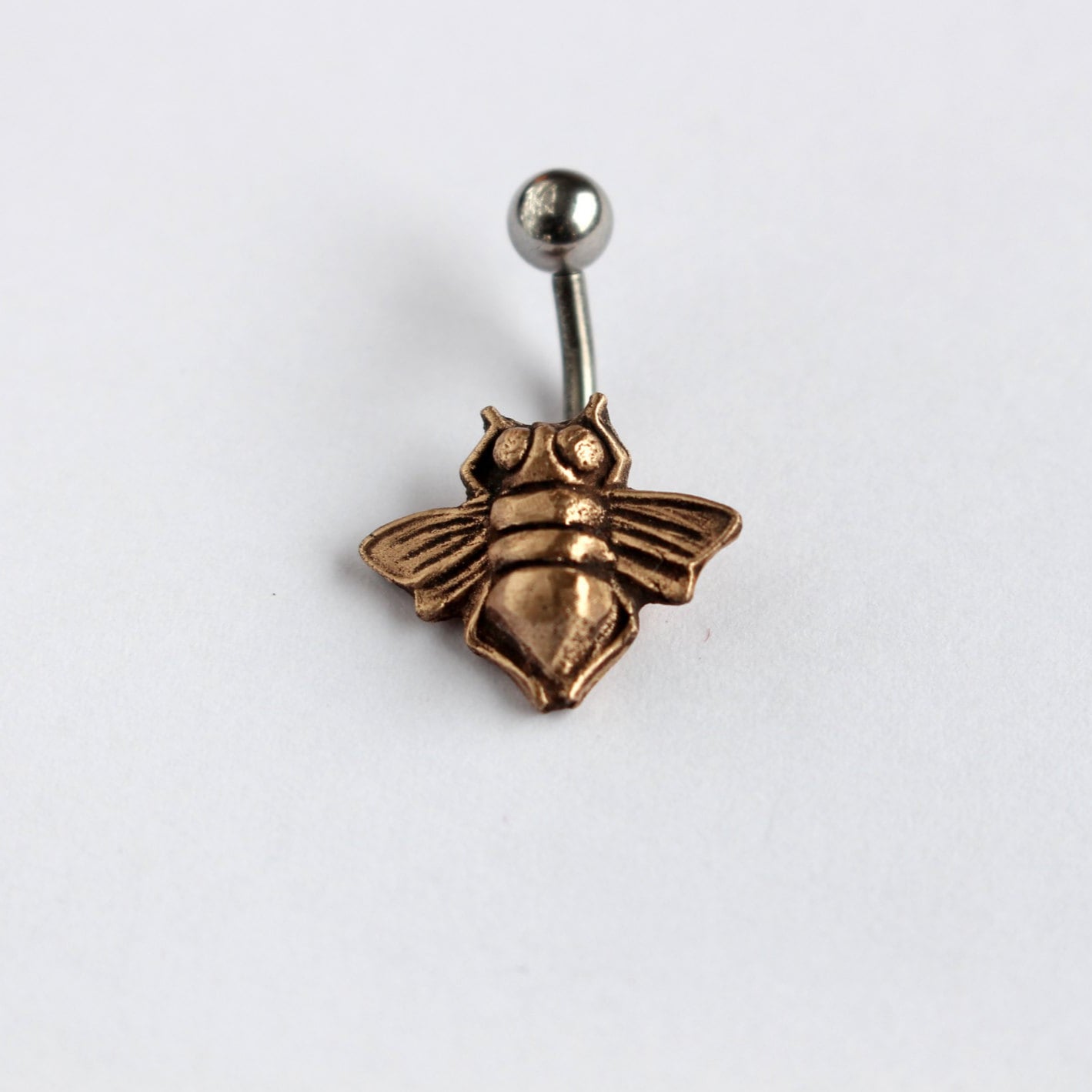 Piercing smycke med ett bi. Biet sitter fast i ena änden av 1.6 mm tjock (14 gauge) böjd stav. Som standard gör jag staven cirka 1 cm lång, exklusive böjen. Om du önskar en annan längd, meddela mig vid beställning.