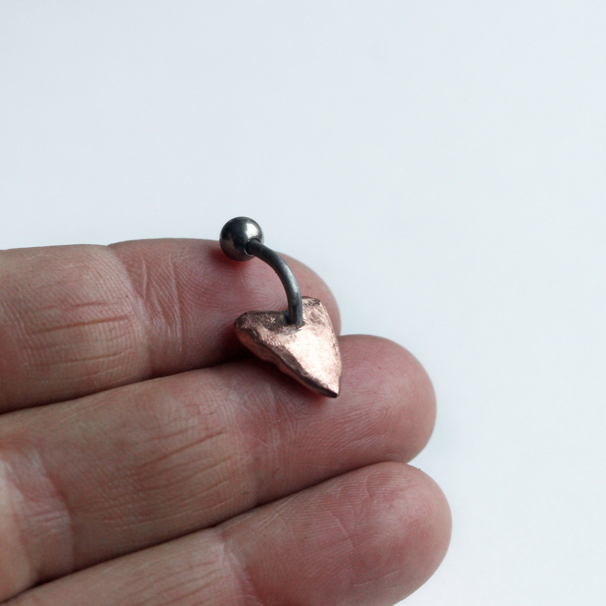 Ett navelpiercing smycke med ett vildsint rosa hjärta. Ena änden av en 1,6mm (14 gauge) böjd stav är ingjuten inuti kopparn. Jag gör stången ca 1 cm lång utan böjning, vill du ha en annan längd hör av dig vid beställning.