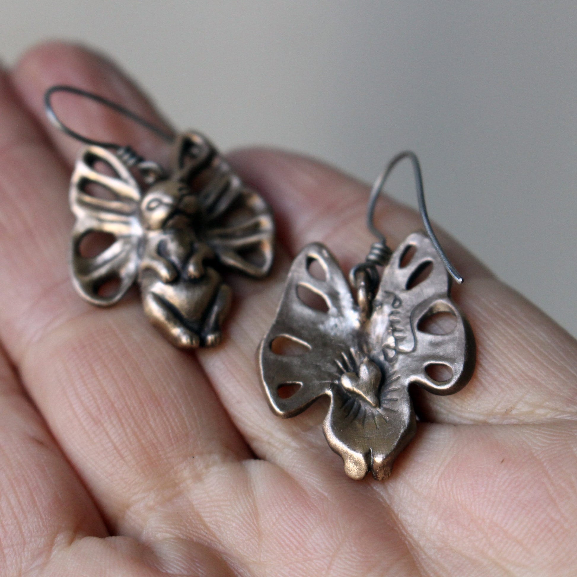 Surrealistisk kanin med fjärilsvingar som öron. Jag gör denna i sterlingsilver och brons och som halsband och örhängen.