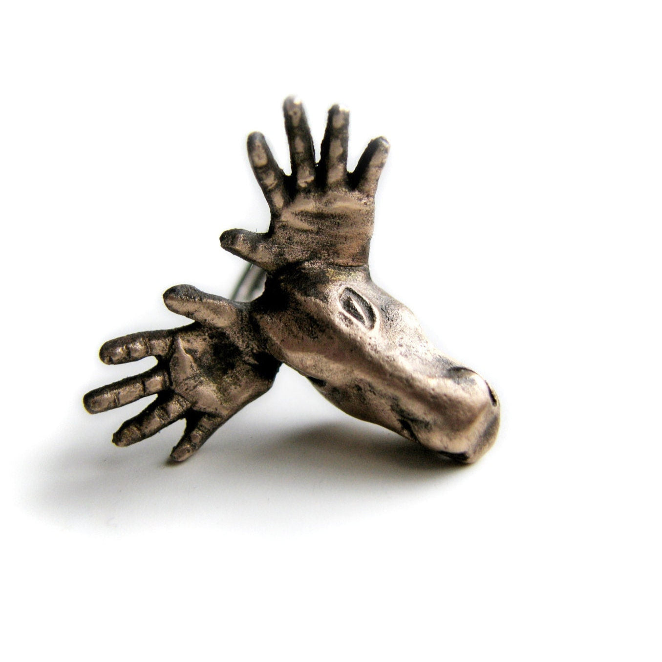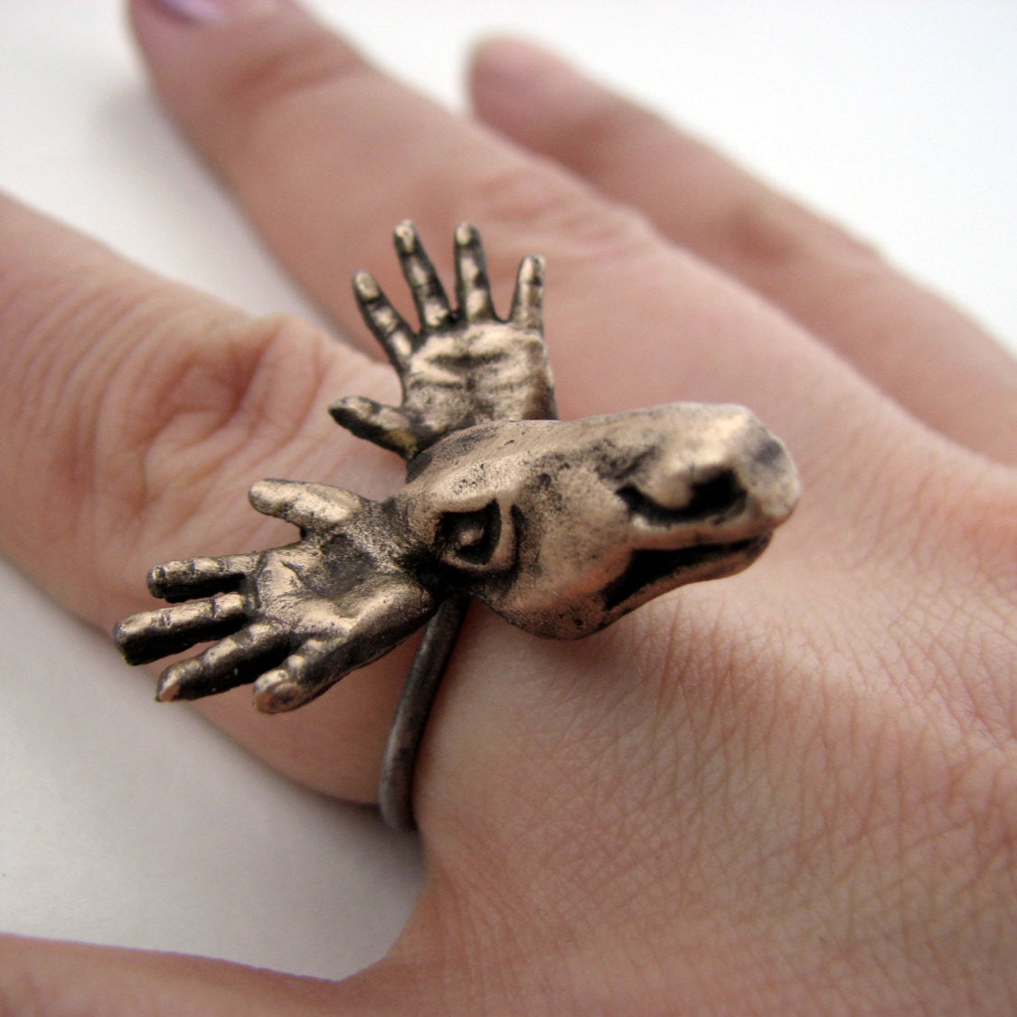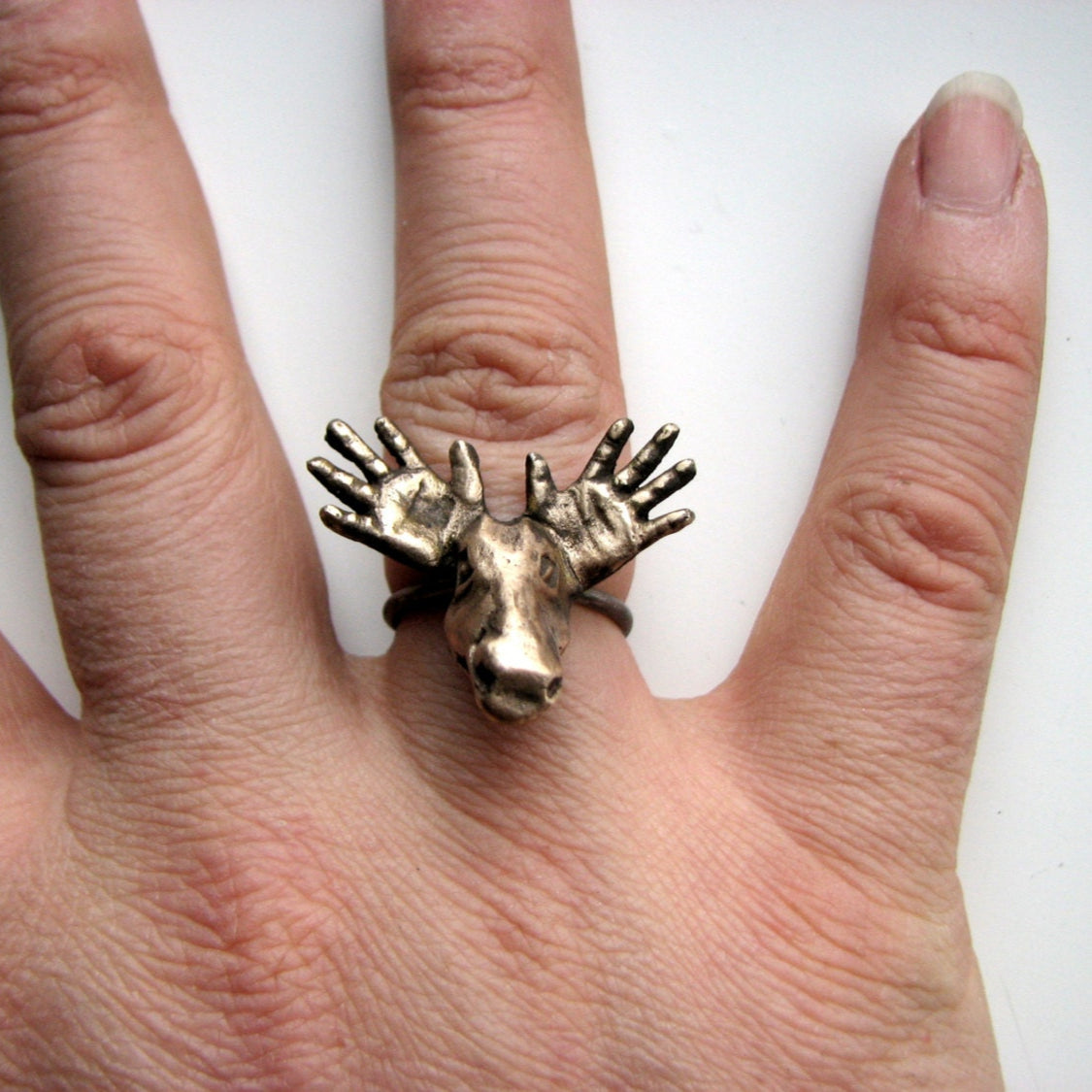 Som ring är den justerbar, en ringskena i rostfritt stål är inbäddad i älghuvudet vid gjutningen.